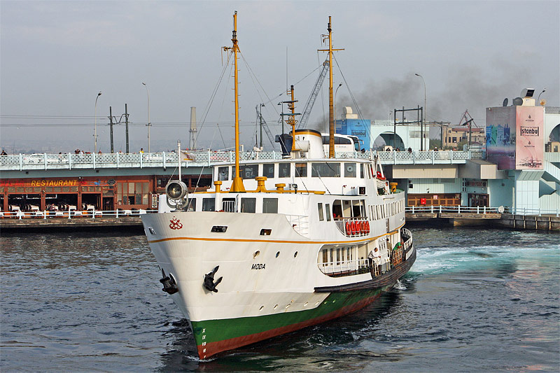 in Istanbul (Türkei), Eminönü, den Pier des Fährterminals anlaufend