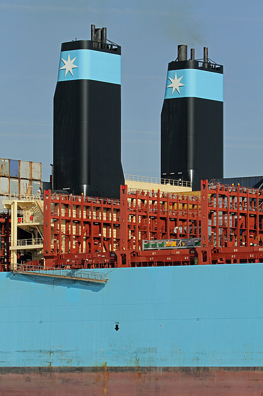 Doppelschornstein des Containerschiffs