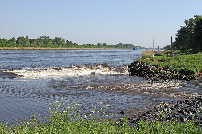 Schwell und Sog an der Mündung das Baches "Jevenau", verursacht durch den Feeder