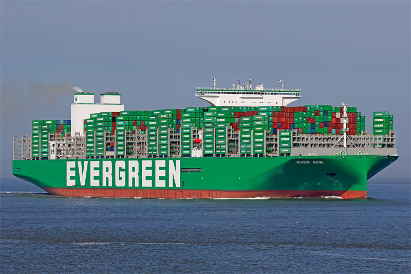 Bemerkung Blick auf das Containerschiff Ever Ace, das sich während seiner Jungfernfahrt auf dem Weg zum Erstbesuch nach Hamburg befindet