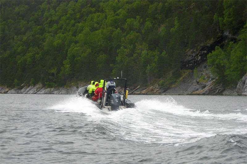 unterwegs mit dem Speedboot auf Exkursion zum "Saltstraumen": mit ca. 30 Kn geht es durch den Kanal, Blick auf das zweite Speedboot