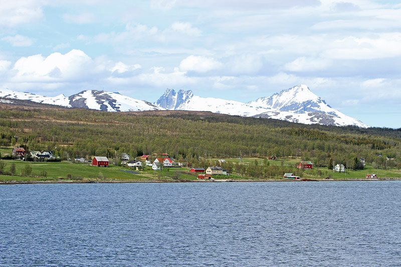 Blick auf einige Häuser, die noch zu "Larseng" gehören, sowie auf die höchsten Berge der Insel