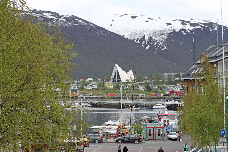 Blick auf den Stadtteil "Tromsdalen" mit der "Eismeerkathedrale"