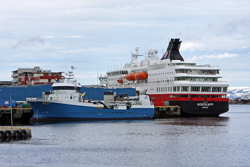 | Bemerkung | 05:30, Ankunft in "Hammerfest". Blick Richtung Kaianlage in der Nähe der "Hamnegata" mit dem Lebendfischtransporter Rofisk sowie der Nordkapp. Im Hintergrund rechts ist teilweise die Fähre Akkarfjord zu erkennen. |