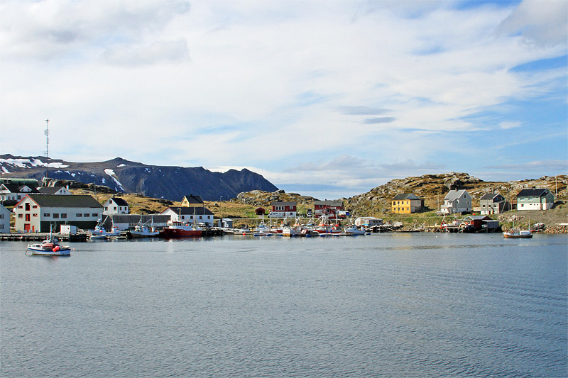 Blick zurück auf den kleinen Hafen von "Gjesvær"