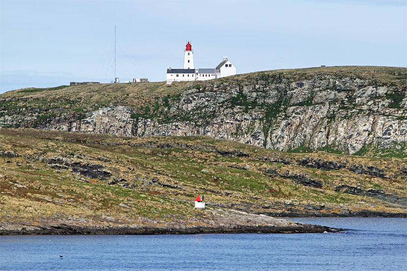 das Foto zeigt einen Teil der Insel "Hornøya" mit dem Leuchtturm "Hornøya Fyr"