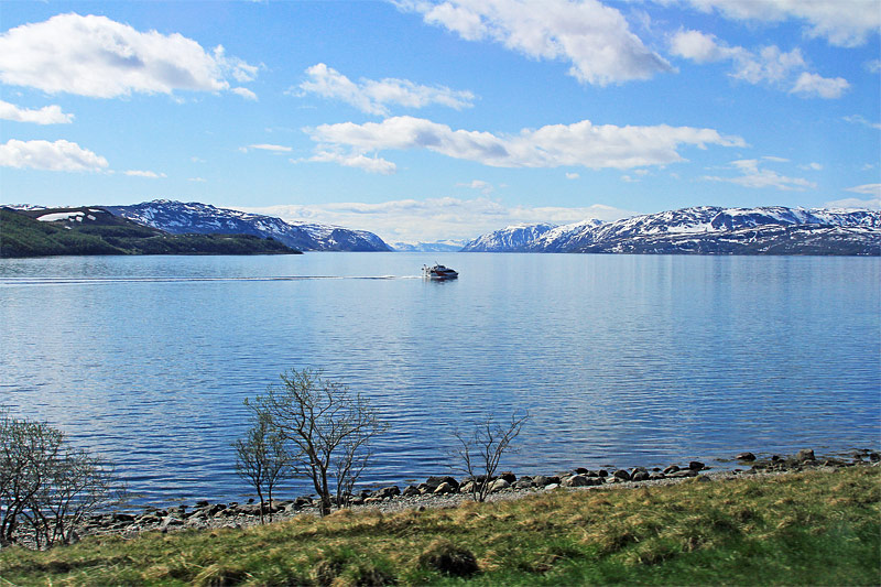 etwas später, Blick nach Südwesten über den "Straumen" in den "Vargsund" hinein. Rechts im Hintergrund ist die Insel "Seiland" zu sehen.
