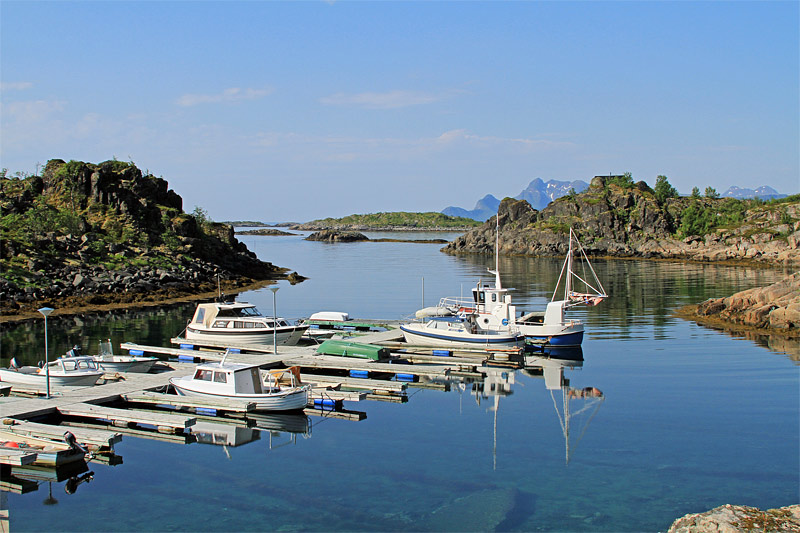 | Bemerkung | Blick vom "Valbergsveien" südlich des Berges "Dalstinden" über einen kleinen Hafen nach Süden in die "Norwegische See". Ein paar hundert Meter weiter war leider die Straße gesperrt, sodass wir umdrehen und doch die E 10 benutzen mussten. |