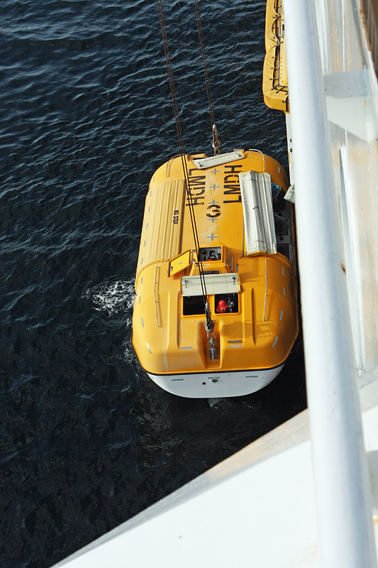 das Rettungsboot Nr. 3 hat die Wasseroberfläche erreicht