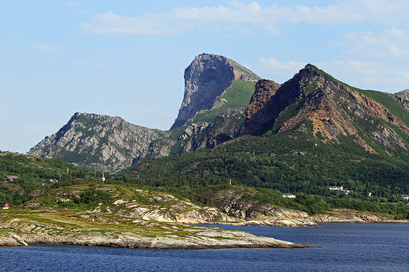 Blick nach Nordwesten auf den 440 m hohe Löwenkopf "Rødøyløva"