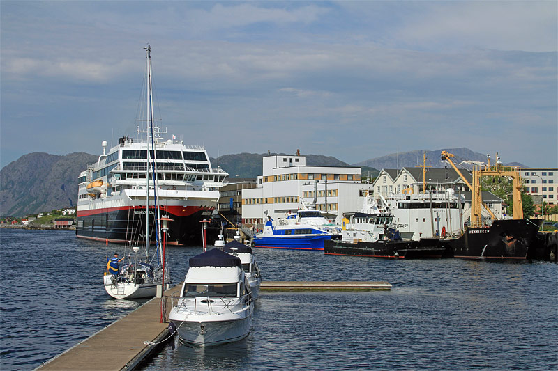 | Bemerkung | Blick von der gleichen Position mehr nach Norden Richtung Terminalbereich. Zu sehen sind von links nach rechts: unsere Midnatsol, die Schnellfähre Vegtind sowie die beiden Regierungsfahrzeuge Lindesnes und "Hekkingen". |