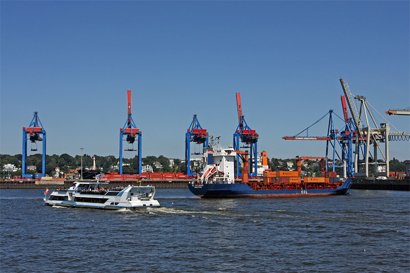 , der den ca. 1800 m langen "Burchardkai" des "HHLA-Container Terminals Buchardkai (CTB)" anläuft