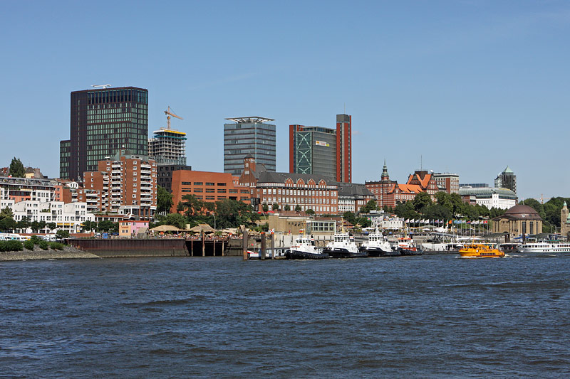 | Bemerkung | Blick nach Nordosten auf einen Teil der Skyline von "Hamburg St. Pauli". An der Schlepperstation "St. Pauli" liegen (von links nach rechts): Constant, Bremen, Bremerhaven und Bugsier 17. Außerdem ist weiter rechts die elbabwärts fahrende Fähre Jan Molsen zu sehen. |