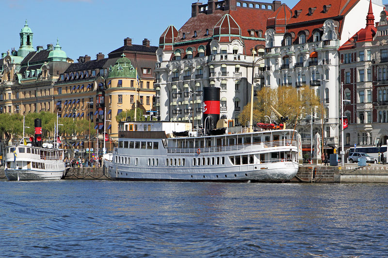 | Bemerkung | Blick auf die nordwestliche Uferpromenade des "Strandvägen". Am Kai liegen die beiden Fahrgastschiffe Östanå I (links) und Stockholm (rechts). |