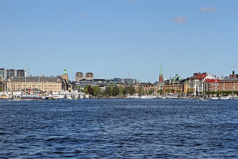 Blick zurück nach Nordwesten auf die Bucht zwischen Blasieholmen (Norrmalm) und Östermalm