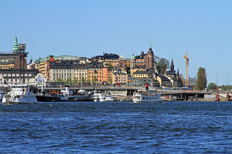 | Bemerkung | Blick nach Westen auf den Nordteil von Södermalm. Rechts ist die Brücke "Skeppsbron" zusehen, die Gamla Stan mit Södermalm verbindet. Links ist die Fähre Djurgården 11 auf ihrem Weg zum Fähranleger "Slussen Kajen" auf Gamla Stan. Wahrscheinlich hat das Fahrgastschiff Gustaf III (mehr zur Rechten) das gleiche Ziel. Desweiteren ist noch die Yacht Patricia zu sehen. |