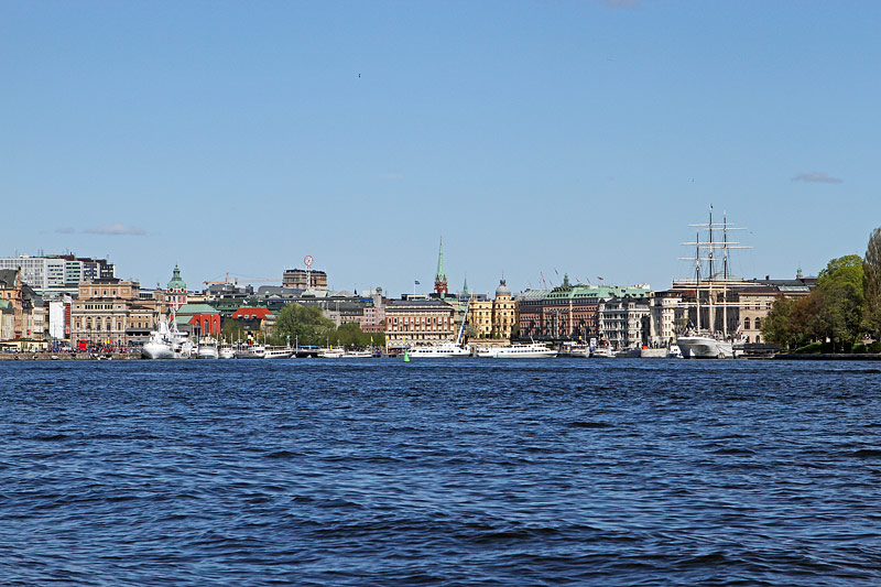| Bemerkung | Blick nach Norden, links ist Gamla Stan zu sehen, rechts Skeppsholmen und in der Mitte im Hintergrund Norrmalm mit der Halbinsel Blasieholmen. Am Ufer von Skeppsholmen liegt das Segelschiff Af Chapman. Der Turm im Hintergrund gehört zur "Sankt-Johannes-Kirche". |