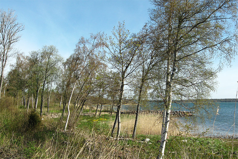 Blick in die entgegengesetzte Richtung. Neben Nadelgehölzen ist die Birke der vorherrschende Baum im Süden Ålands.