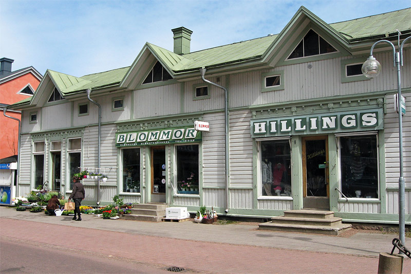ein schönes altes Holzgebäude in einer der Einkaufsstraßen von Mariehamn