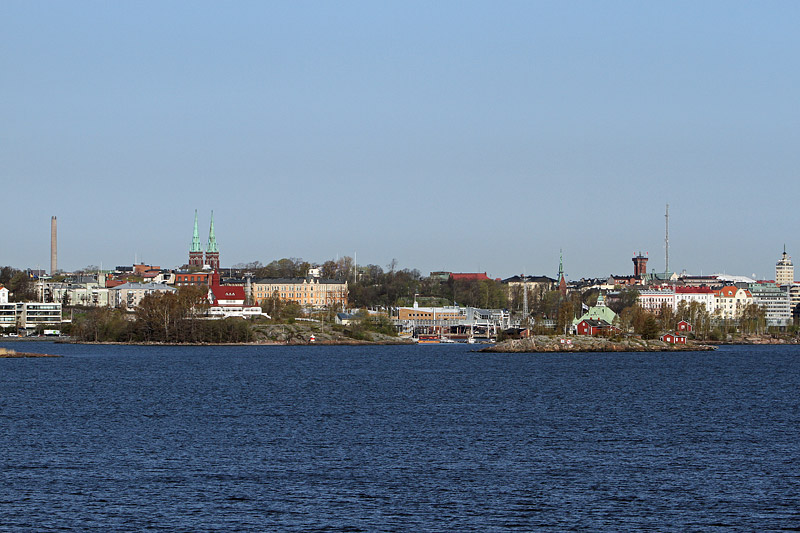 | Bemerkung | Blick nach Nordwesten auf den westlichen Teil des Südhafens von Helsinki. Im Vordergrund sind von links nach rechts die Inseln "Luoto", "Ryssänsaari" und "Valkosaari" zu sehen. Im Hintergrund, zwischen den Inseln, erkennt man einen Teil des Terminalbereiches der "Silja-Line". Die zwei Türme mit den grünen Spitzen gehören zur "Johanniskirche". |
