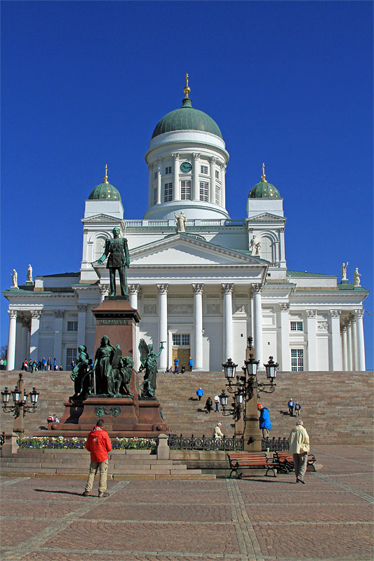 | Bemerkung | Blick nach Norden über den Senatsplatz "Senaatintori" auf die "Helsinki-Kathedrale", 1830-1852 erbaut von "Carl Ludwig Engel". Der klassizistische Dom ist eine Kreuzkuppelkirche mit einem Grundriss in Form eines griechischen Kreuzes. |