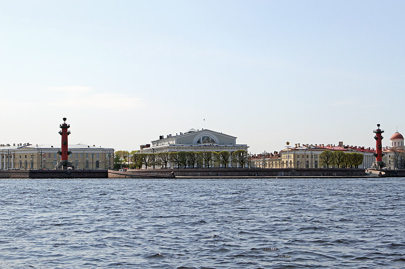 Blick nach Westen auf die gesamte Ostspitze (Strelka) der Wassiljewski-Insel