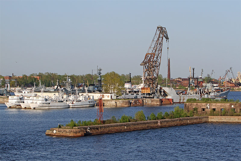 Blick nach Osten über einen großen Bereich des Flottenstützpunktes von "Kronstadt"