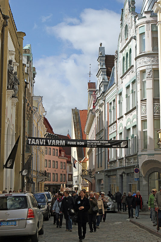 Blick in südlicher Richtung entlang der Straße "Pikk". Am linken Bildrand sieht man den Giebel des Kanut-Gildenhauses "Kanuti Gildi hoone".