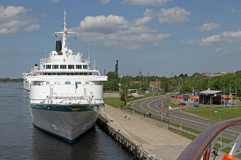 Blick nach Norden entlang des Kai's auf das Kreuzfahrtschiff