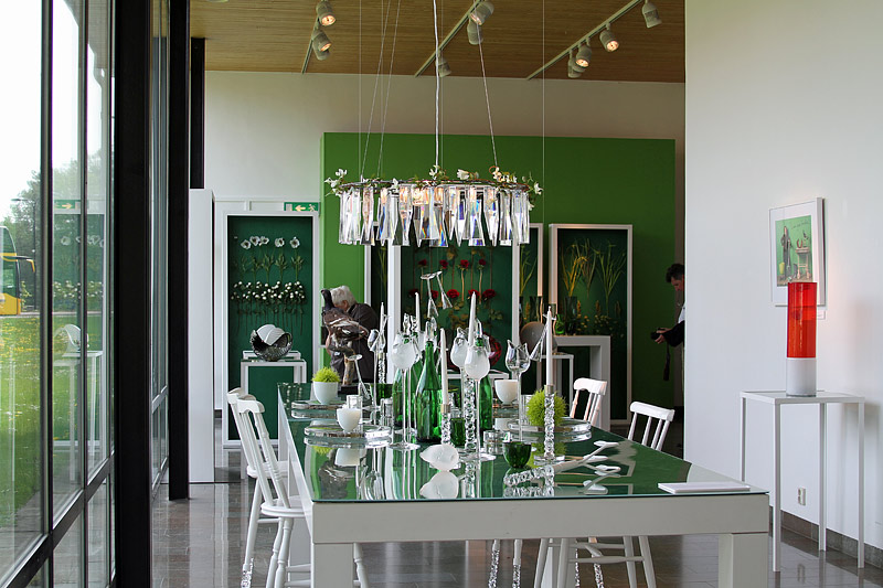 ein beispielhaftes Foto aus der Ausstellung: ein gedeckter Tisch bestehend ausschließlich aus Glasartikeln
