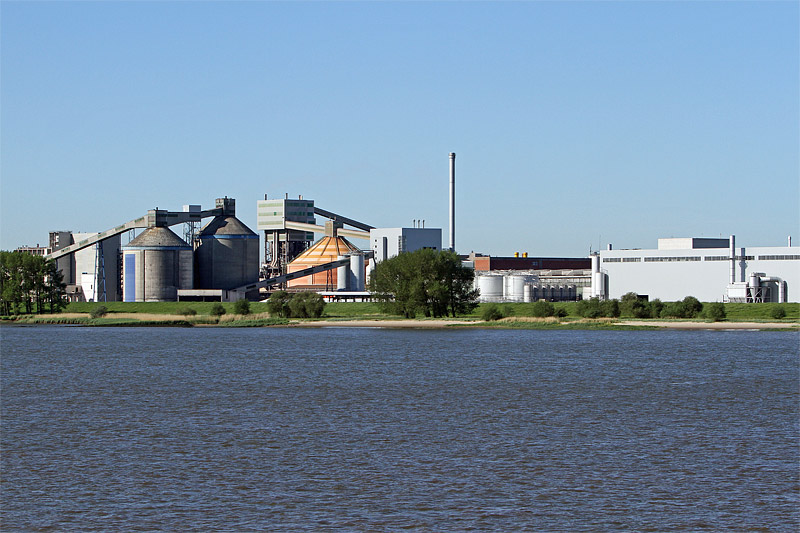noch einmal ein Blick auf die Fabrikanlagen der Aluminiumhütte "Aluminium Oxide Stade"
