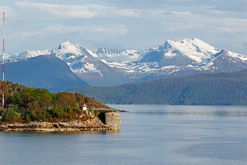 | Bemerkung | Blick zurück nach Südosten Richtung Romsdalsfjorden und auf die Bergkette südlich des Fjordes - das festungsähnliche Gebilde im Vordergrund gehört zur ehemaligen "Torpedobatterie Julholmen", im WK II von den Deutschen erbaut |