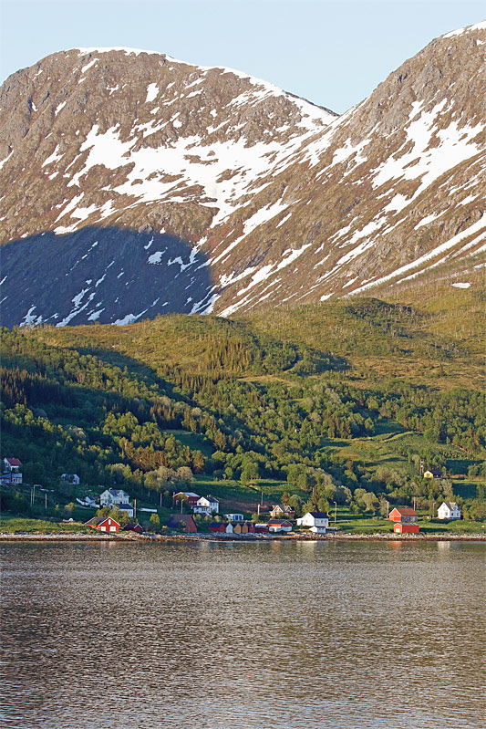 22:00 - wieder auf Nordkurs - Blick nach Osten zur Ortschaft "Vasstrand" - dahinter ist der Nordhang des "Vasstinden" zu sehen