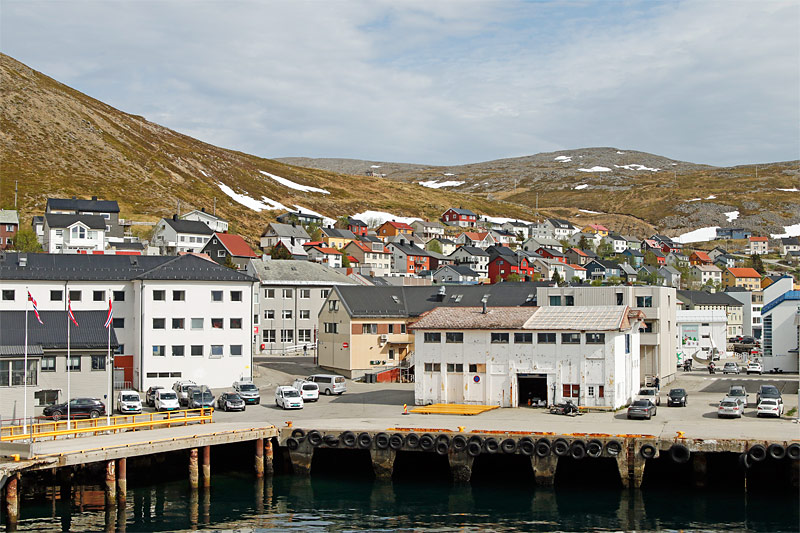 Honningsvåg, Magerøya (Troms og Finnmark, N), kurz vor Erreichen des Piers am "Fiskeriveien" Nr. 2