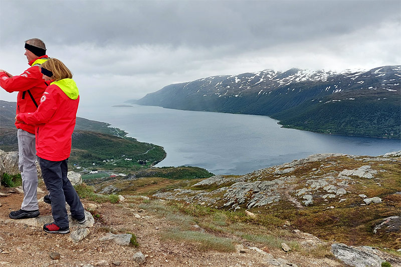 | Bemerkung | nun der Blick von der gleichen Position nach Norden zum inneren Ende des Kaldfjorden - auch dort regnet es - beide Fjorde liegen bei "Ersfjordbotn" nur etwa 1 km auseinander - somit kann man sagen, dass die beiden Fjorde die Insel "Kavløya" in drei Teile zerteilen |