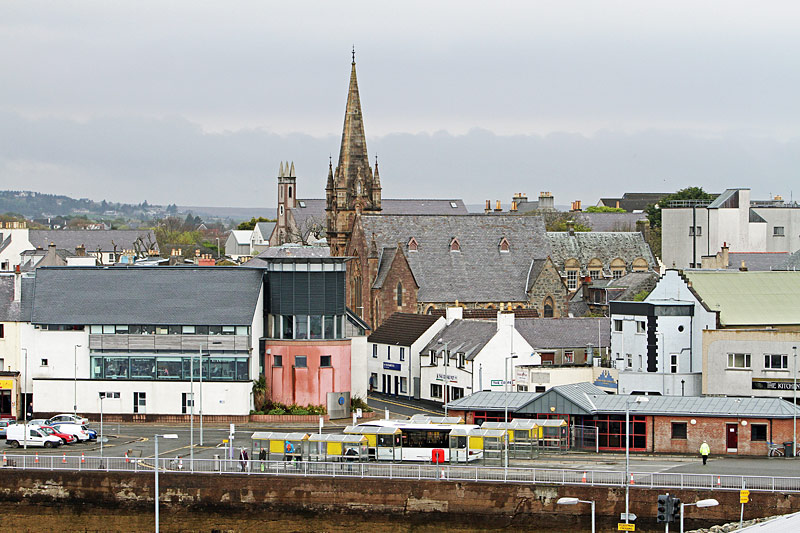 | Bemerkung | Blick wieder etwas weiter nach rechts - hinter der Busstation zweigt die "Kenneth Street" ab, an der die Kirche "Martins Memorial Church" gelegen ist (1878 gebaut) - dahinter ist nun teilweise die "Freie Kirche von Schottland" zu erkennen (1845 gebaut) |