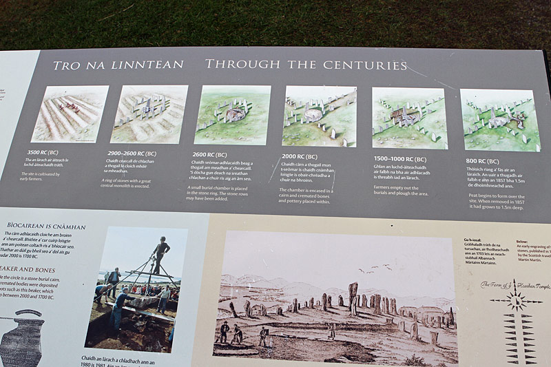 Auszug aus "My Highlands.de": in den Highlands gibt es viele großartige Steinkreise, aber Callanish auf der Isle of Lewis ist anders. Viel komplexer und wilder. Im Gegensatz zu anderen Steinkreisen sind die Stones of Callanish oder Gälisch „Calanais“ nicht ebenmäßig behauen – das verleiht den einzelnen Steinen einen ganz eigenen Charakter. Zudem besteht Callanish nicht nur aus einem simplen Kreis, sondern aus mehreren miteinander verwobenen geometrischen Formen, in deren Zentrum ein großer Monolith von viereinhalb Meter Höhe steht. Ein echter Steinriese. Die umgebenden Menhire sind niedriger, sodass es fast aussieht, als würde sie zur Mitte hin ansteigen. Überhaupt läuft alles auf dieses eine Zentrum zu: Aus drei Seiten treffen sich lange Linien in der Mitte, vom Norden her kommt sogar eine Art Allee aus Steinen auf den Kreis zu. Würde man als Vogel darüber fliegen, könnte man erkennen, wie die Monolithen die Form eines gigantischen Keltenkreuzes bilden. |