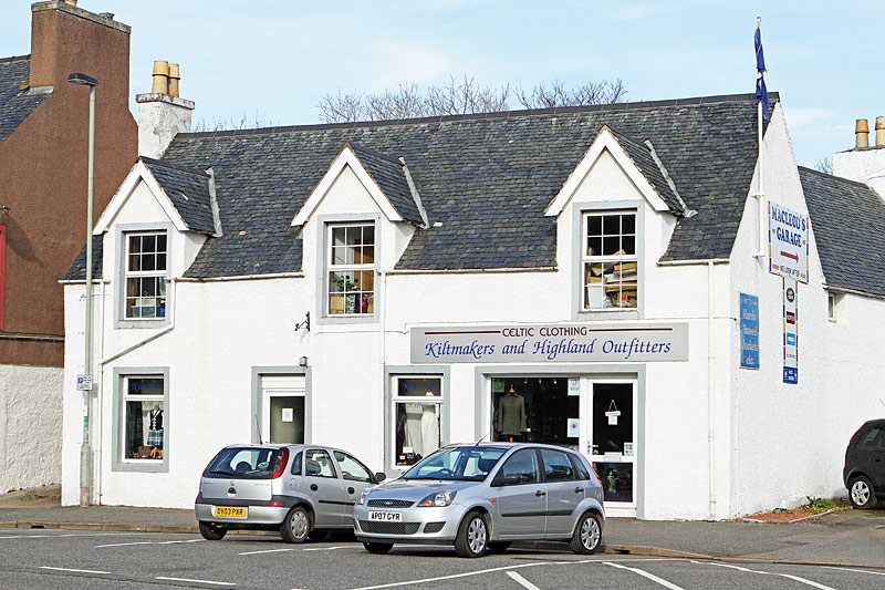 Blick auf das weiße Gebäude "14B Bayhead" - das Geschäft "Celtic Clothing" gibt es auch heute noch