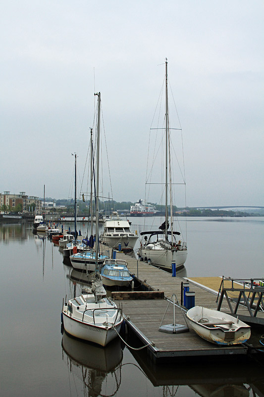 Blick nach Norden entlang der "Foyle Port Marina" - im Hintergrund ist wieder die "Fram" zu erkennen