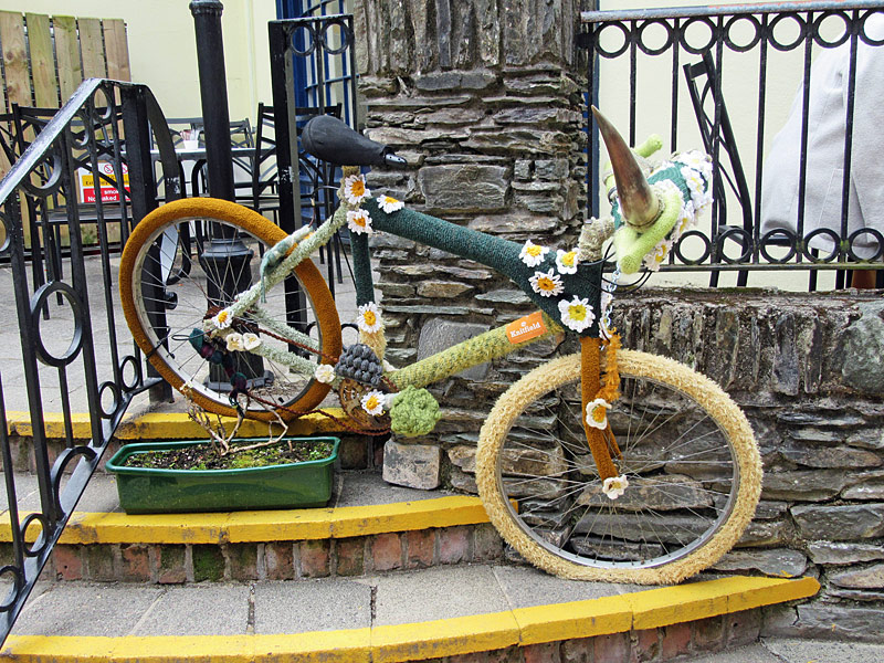 Nahaufnahme des Fahrrades, das auf der Treppe steht