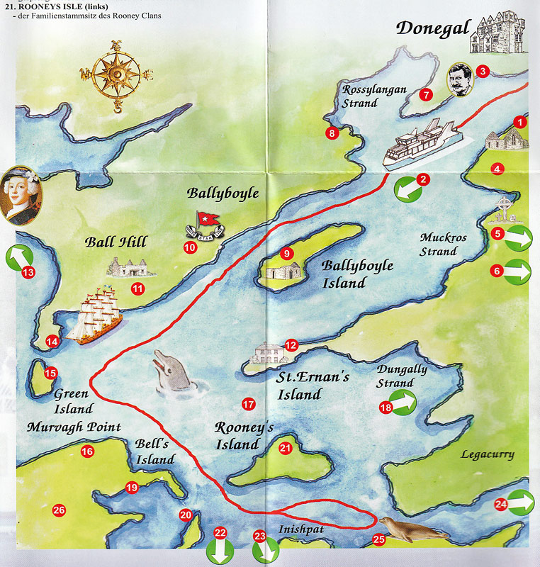 ein Ausschnitt des deutschsprachigen Flyers zeigt die Route unserer Rundfahrt auf der "Donegal Bay"