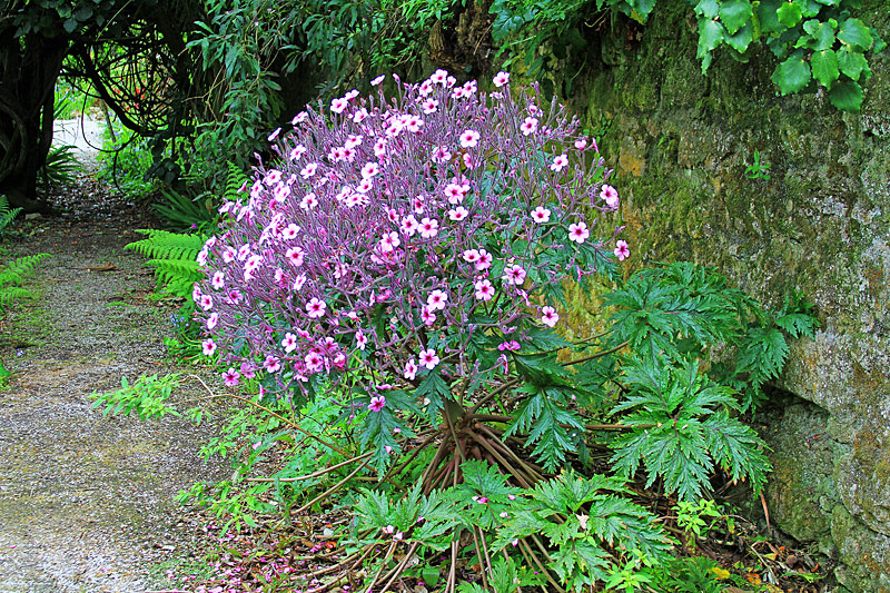 | Bemerkung | Blick auf ein schönes Einzelexemplar einer "Geranie" ("Madeira-Storchschnabel" - Geranium maderense) am Wegesrand - wie der Name schon sagt, auf der Insel "Madeira" beheimatet |