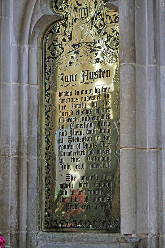 Blick auf die Gedenktafel für die britische Schriftstellerin "Jane Austin" (1775 - 1817), über ihrer Grabstätte