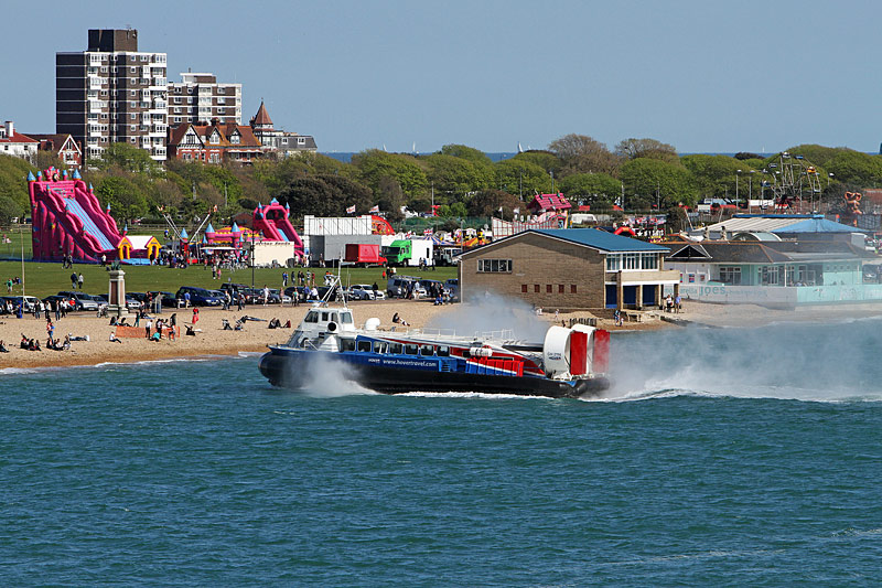 | Bemerkung | Blick nach Südosten zum Strand der "Southsea Esplanade" mit dem "Southsea Hoverport", in dessen Bereich gerade das Luftkissenboot "Freedom 90" den Strand anläuft - Daten zur "Freedom 90": Typ: PAP1-88/100 S Hovercraft, 1990 fertiggestellt, 25,4 m x 11,2 m, 45 Knoten, 95 Passagiere - Strecke: Southsea (Portsmouth) - Ryde (Insel Wight) |