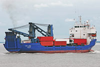 2. Schiff einer Serie baugleicher RORO-Frachtschiffe (5 Einheiten) - Rumpfhersteller: Blohm + Voss AG, Hamburg, Bundesrepublik Deutschland (Nr. 901) - Sietas Typ 92 (deutsche Eis-Klasse ?, 1 geschweißtes Deck), ausgestattet mit 2 Kranen á 30 ts Tragfähigkeit |