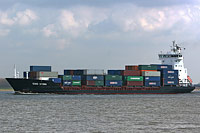 3. Schiff einer Serie typgleicher Feeder-Containerschiffe (23 Einheiten im Design "Peters 650" - 11 ohne und 12 mit Ladegeschirr), siehe auch >Euro Squall<, >Rumba<, >Samskip Endurance<, >NCL Haugesund< und >BCL Iwona< - das Schiff wurde 2012 in >Conmar Elbe< umbenannt, siehe auch dort |