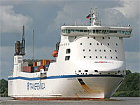 2. Schiff einer Serie baugleicher Fähren (3 Einheiten) - siehe auch die Schwesterschiffe >Stena Foreteller< und >Stena Forerunner< - Ladungsmeter: 3.000, Trailerkapazität: 205 |