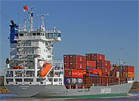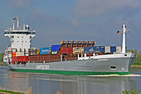 13th ship of a series of identically constructed feeder container ships of Sietas standard type 160 (13 vessels - German ice class E, open hatch container feeder, black window frames and upright windows, thick bow mast, 1 welded deck), also see >Sven<, >BF Fortaleza<, >Kalina<, >Petuja<, >K-River< and >Borussia Dortmund< - also see >Lappland< (type 161a) - in 2014 the ship was renamed >Emilia<, also see there |