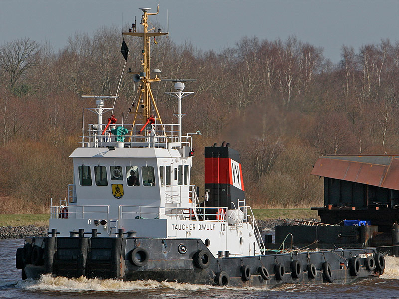 im Schleppverband mit Ponton >T.O.W. I< und Schlepper >Taucher O. Wulf 8<, siehe auch entsprechende Impressionen