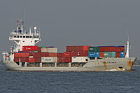 5. Schiff einer Serie baugleicher Feeder-Containerschiffe vom Sietas Typ 148 (6 Einheiten - deutsche Eis-Klasse E, trotz Angabe von Schüttgut als Containerschiff klassifiziert, geschlossene Nock, geringere Maschinenleistung, 2 geschweißte Decks), siehe auch >Believer<, >Uranus< und (>Perceiver<, >Elevation<) - ursprünglich als Mehrzweckfrachter geplant, graue Rumpffarbe - das Schiff wurde 2009 in >Elation< umbenannt, siehe auch dort |